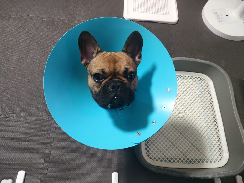 それと、エリザベスカラーですが、病院から青色のエリザベスカラーを貰っていたのですが、妻がどうしても術後服(エリザベスウエア)なるものがあるのでほしいと、それがあると首につけなくてもいいらしく、愛犬の快適さを考慮して購入しました。
